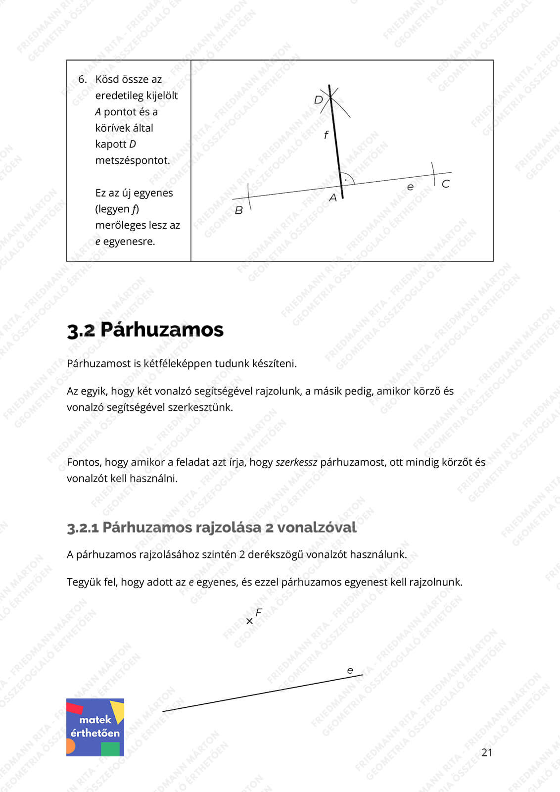 - párhuzamos, merőleges, metsző, pont, egyenes szakasz, félegyenes, stb.